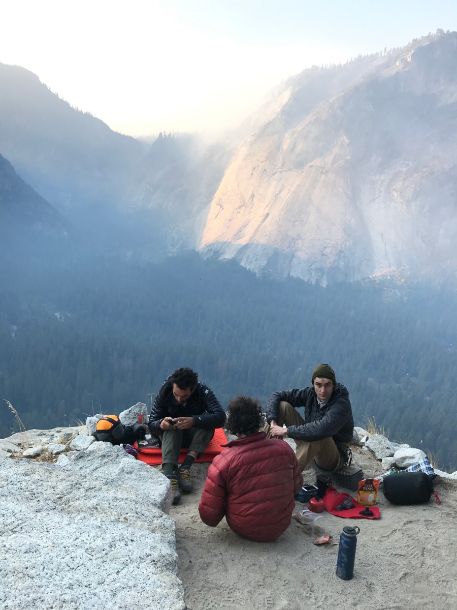 Breakfast on the ledge with fellow climbers